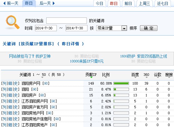 泗阳房产网访问数据2014.7.30
