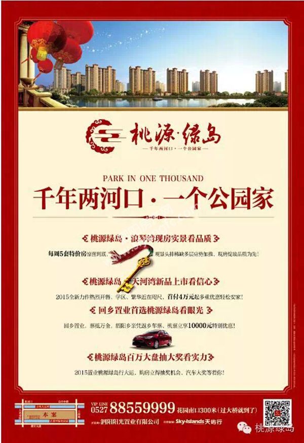 新春佳节来临之际,桃源绿岛为回馈广大客户,不仅将在春节前后为各位购房者送上新春大礼包,更有多重购房优惠回馈于民。届时,凡在2015年元宵节后成交的客户,还可以参加“购房赢汽车”抽大奖活动。此外,为使得新春佳节更加喜庆,让客户感受到桃源绿岛的温暖气氛,同时增加业主间的邻里情,现场还有各种活动,精彩不断。