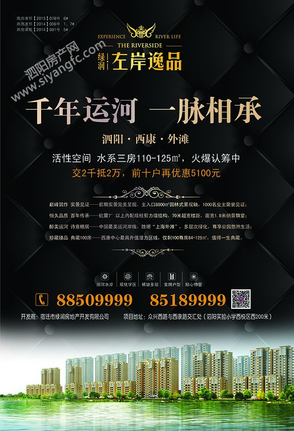 注:以上告书不是为了自身炒作或哗众取宠,完全是为了响应县政府号召,大力鼓励农户进城购房,踏上小康,“左岸逸品”不是城区最好的项目,但“左岸逸品”力求做到更好,为选择在这里的百姓创造一个真正的“中国最美运河岸线——高品质水岸景观社区”!