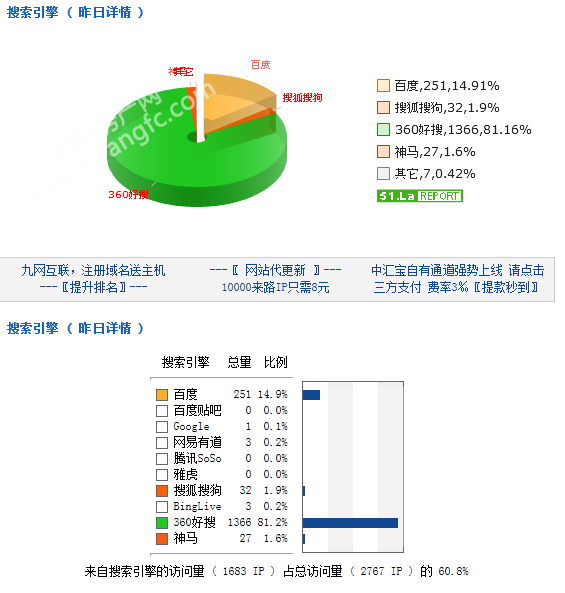 下图为2015年10月03日总访问量。当天共有2767宽带线路,7141台独立电脑访问了泗阳房产22615次。平均每人点击8.17立页面。