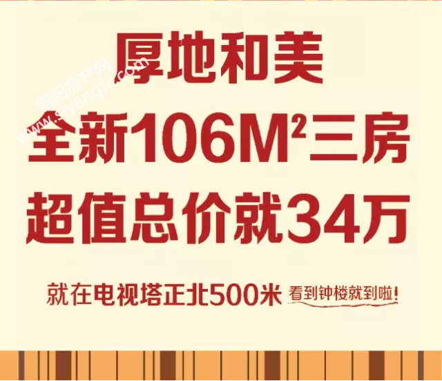 厚地和美打造泗阳房地产性价比之王!65#楼全新106㎡经典三房户型,超值总价就34万。坐拥泗阳最美英式建筑群落,坐享泗阳最好的物业公司服务;厚地和美一期已盛大交付,美景实实在在。选择厚地,让您看的开心,住的舒心!